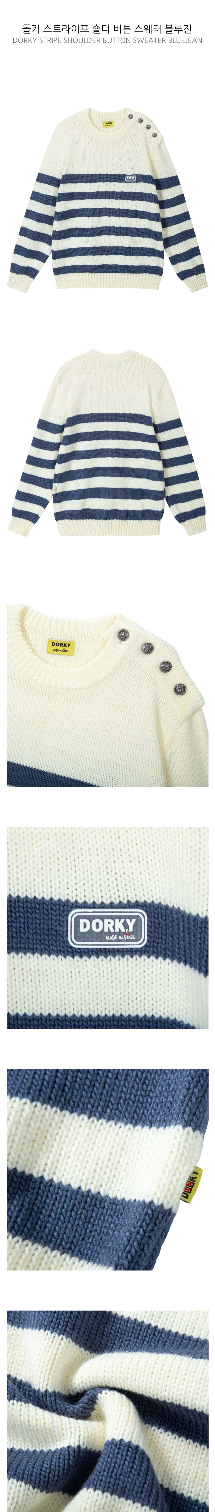 돌키 스트라이프 숄더 버튼 스웨터 블루진