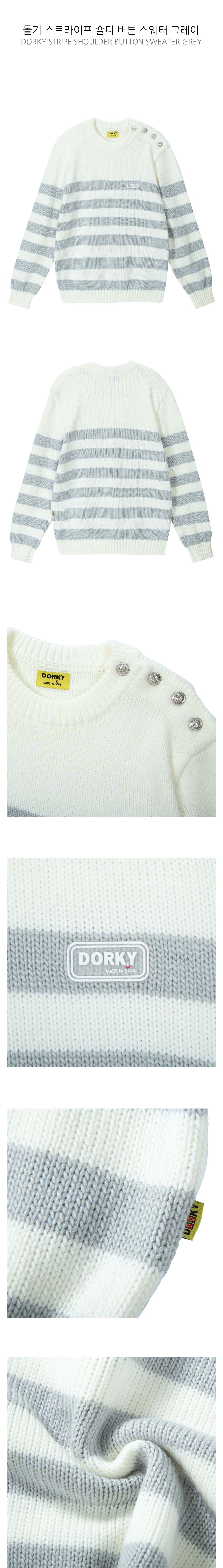 돌키 스트라이프 숄더 버튼 스웨터 연그레이