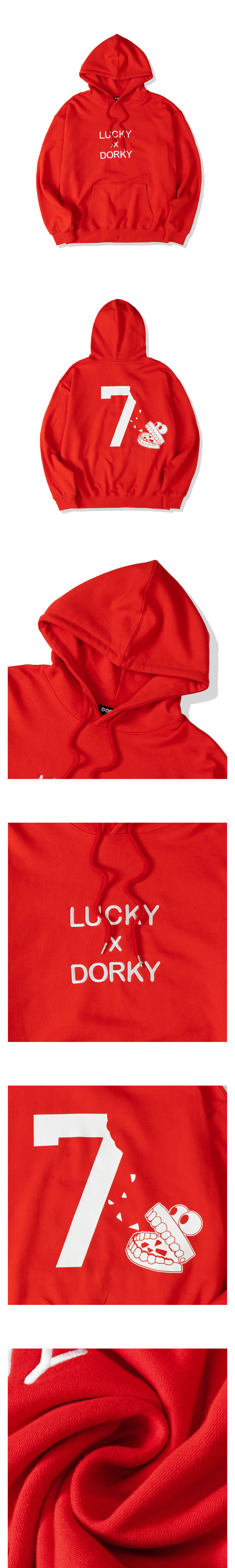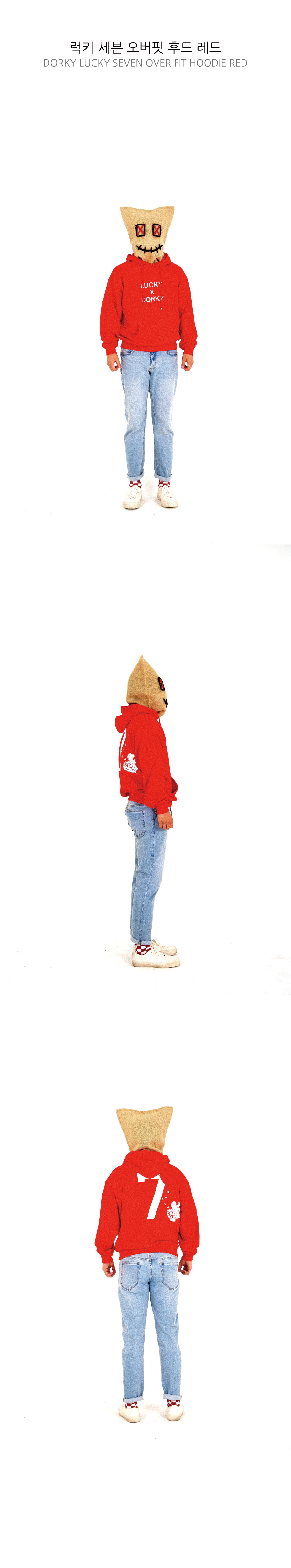 럭키 세븐 오버핏 후드 레드