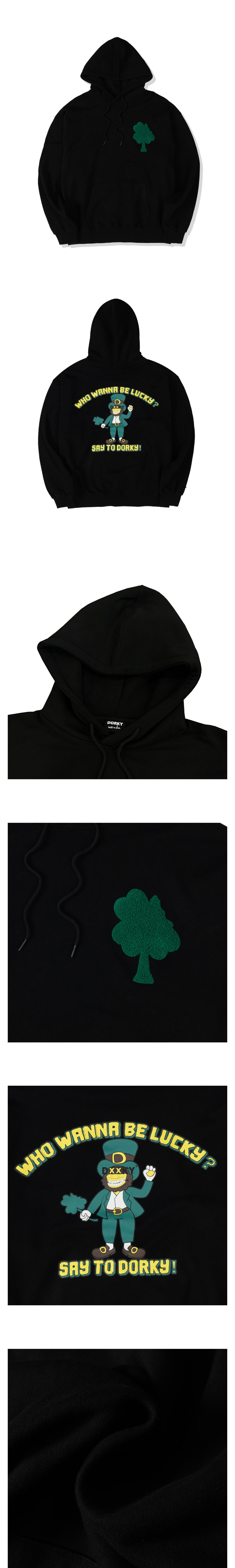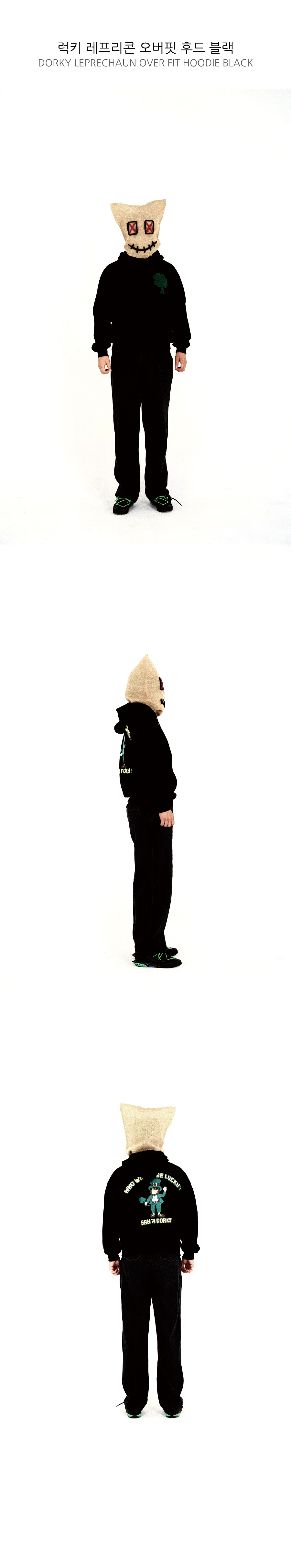 럭키 레프리콘 오버핏 후드 블랙