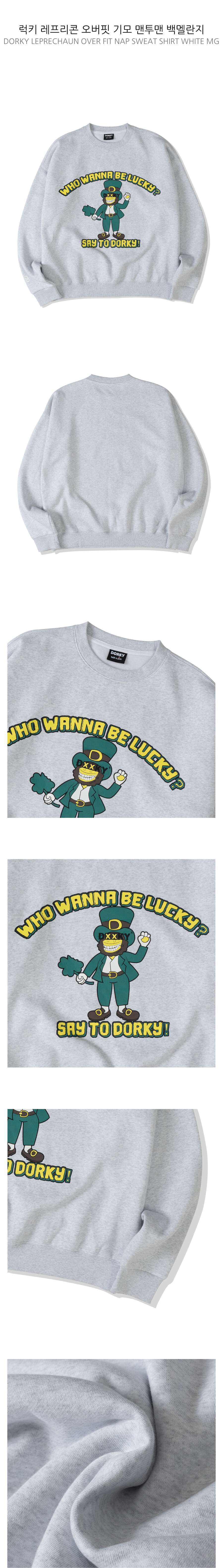 럭키 레프리콘 오버핏 기모 맨투맨 백멜란지